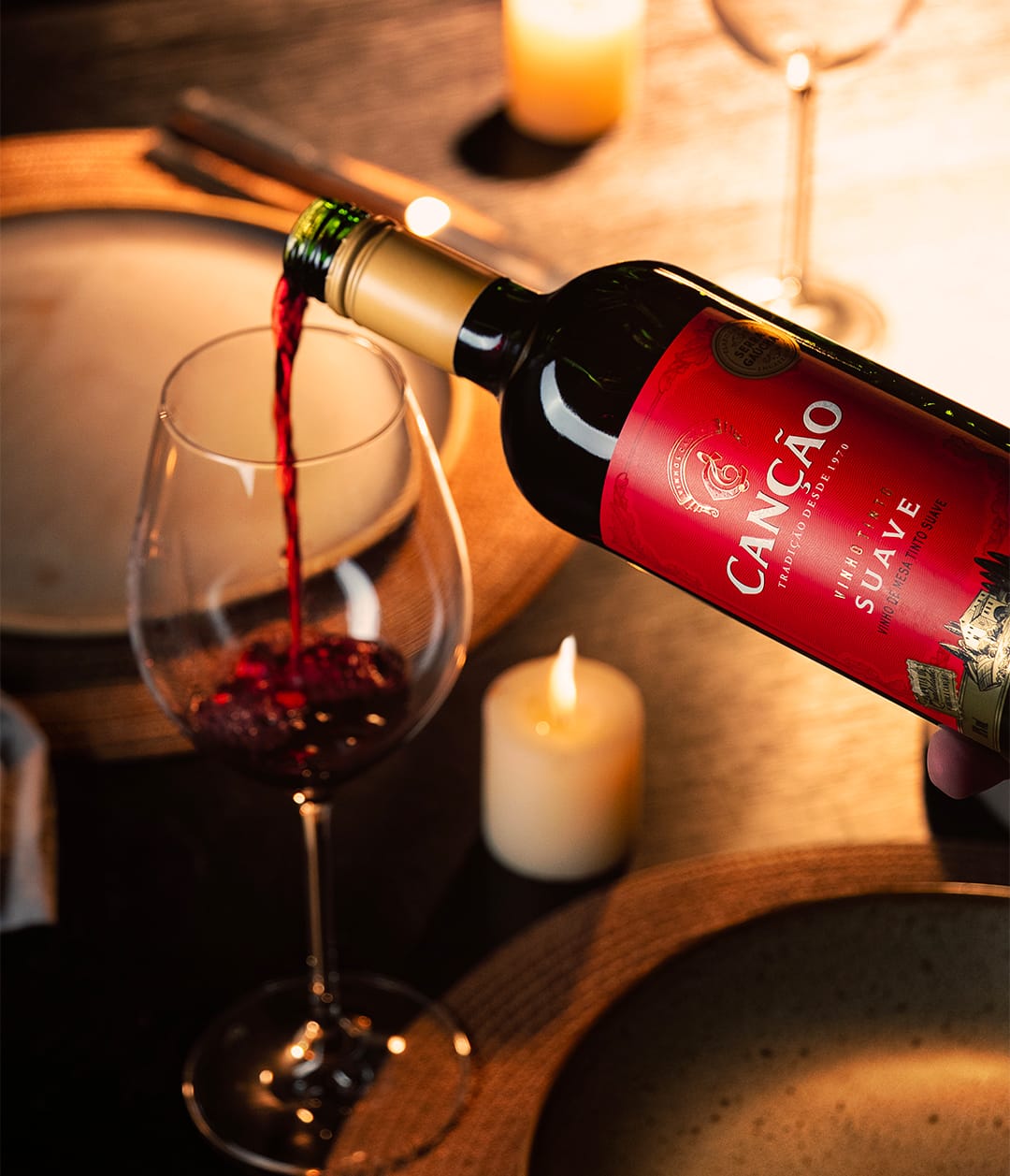 O Vinho Canção Tinto Suave é um vinho de mesa brasileiro, elaborado com uvas selecionadas das variedades Isabel e Bordô.
